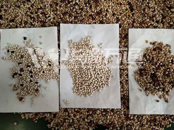 Bean color sorting section: it adopts the color sorter to separate the moldy kernels, shriveled beans and foreign species of beans according to the color and luster feature of the beans.